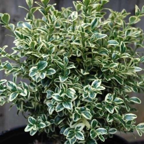 frunziș veșnic verde mediu, marginit de alb-crem, frunzis pestrit. Deosebit de